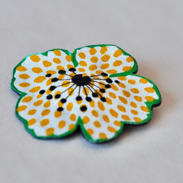 Broche Fleur DOTTY Blanc-Jaune