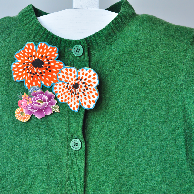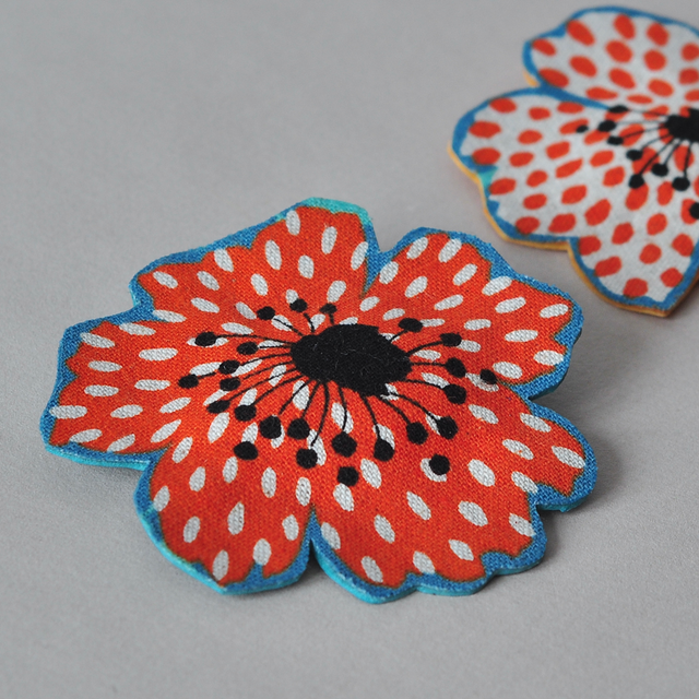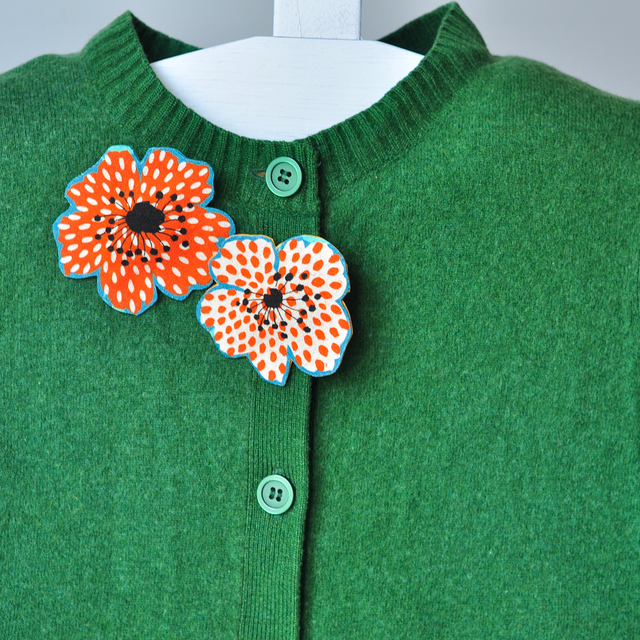 Découvrez un accessoire élégant et singulier de la collection DOTTY : la broche fleur orange. Une création originale de Les Botanes, elle est confectionnée en tissus de qualité et présente un envers en cuir noir qui contraste avec son motif floral aux teintes lumineuses. Chaque broche est une pièce unique, conçue de manière artisanale en France. Pour un style qui vous ressemble, des variations sont possibles sur commande sans surcoût. À noter que des barrettes et headbands sont également disponibles sur demande.