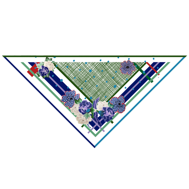 Plongez dans l'élégance de notre foulard châle triangulaire, issu de la collaboration entre Les Botanes et Âmes Sœurs Édition. Cette pièce unique, à la fois chaleureuse et sophistiquée, met en avant un design français. Son motif délicat de mésange bleue et de hachures vertes sur fond blanc est le fruit d'une conception signée par les deux maisons. L'impression italienne et la finition roulotté main, réalisée en France, garantissent une qualité exceptionnelle. Composé d'un luxueux mélange de laine, de soie et de cachemire, ce foulard vous offre une douceur et un confort incomparables.