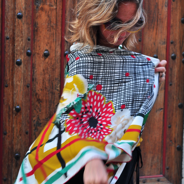 Foulard Châle Mésange et Rayures - Laine, Soie et Cachemire