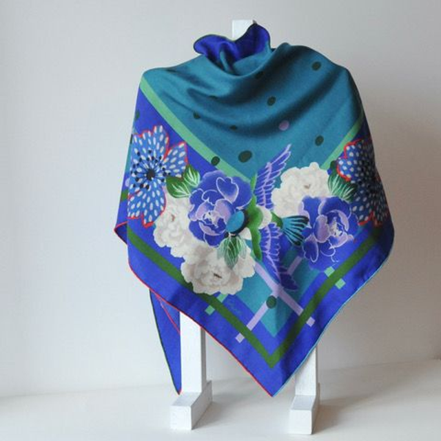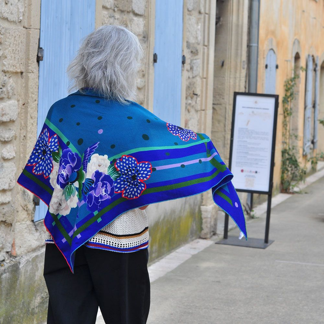 Plongez dans l'élégance de notre foulard châle triangulaire, issu d'une collaboration unique entre Les Botanes et Ames Sœurs Édition. Cette pièce d'exception allie la richesse des matières naturelles au savoir-faire français, créant un accessoire à la fois chaleureux et sophistiqué. Son motif délicat de mésange bleue sur un fond bleu encre et un intérieur bleu canard est le fruit d'une conception signée par les deux maisons. L'impression italienne et la finition roulotté main, réalisée en France, garantissent une qualité exceptionnelle et une grande durabilité.