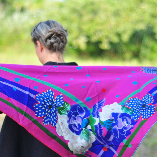 Plongez dans l'élégance de notre foulard châle triangulaire, issu d'une collaboration unique entre Les Botanes et Ames Sœurs Édition. Cette pièce d'exception allie la richesse des matières naturelles au savoir-faire français, créant un accessoire à la fois chaleureux et sophistiqué. Son motif délicat de mésange bleue sur un fond rose indien est le fruit d'une conception signée par les deux maisons. L'impression italienne et la finition roulotté main, réalisée en France, garantissent une qualité exceptionnelle et une grande durabilité.