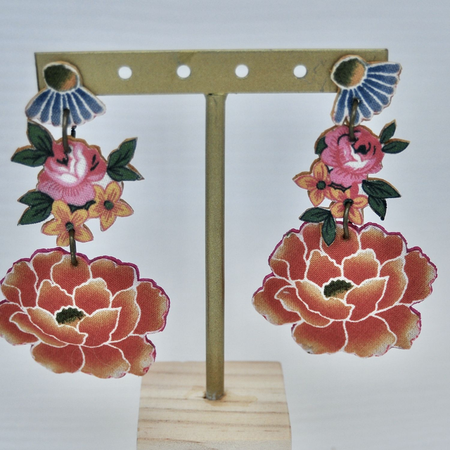 Boucles d'Oreilles PIVOINE et Bouquet Ocre