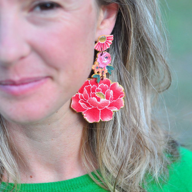 Boucles d'Oreilles PIVOINE et Bouquet Rouge Coquelicot