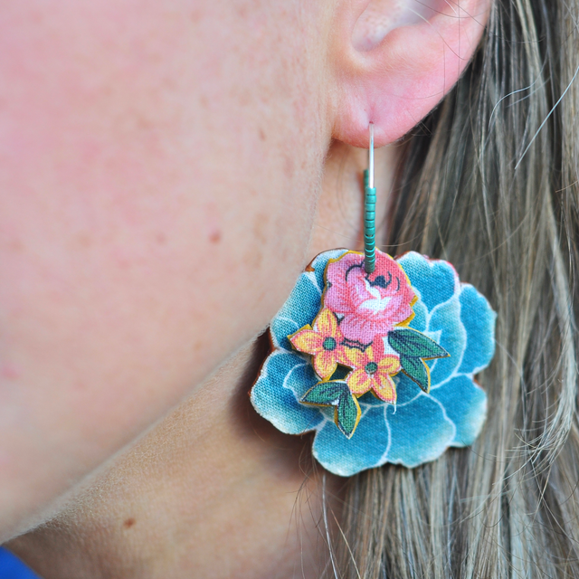 Boucles d'Oreilles PIVOINE et Bouquet sur Créole Turquoise